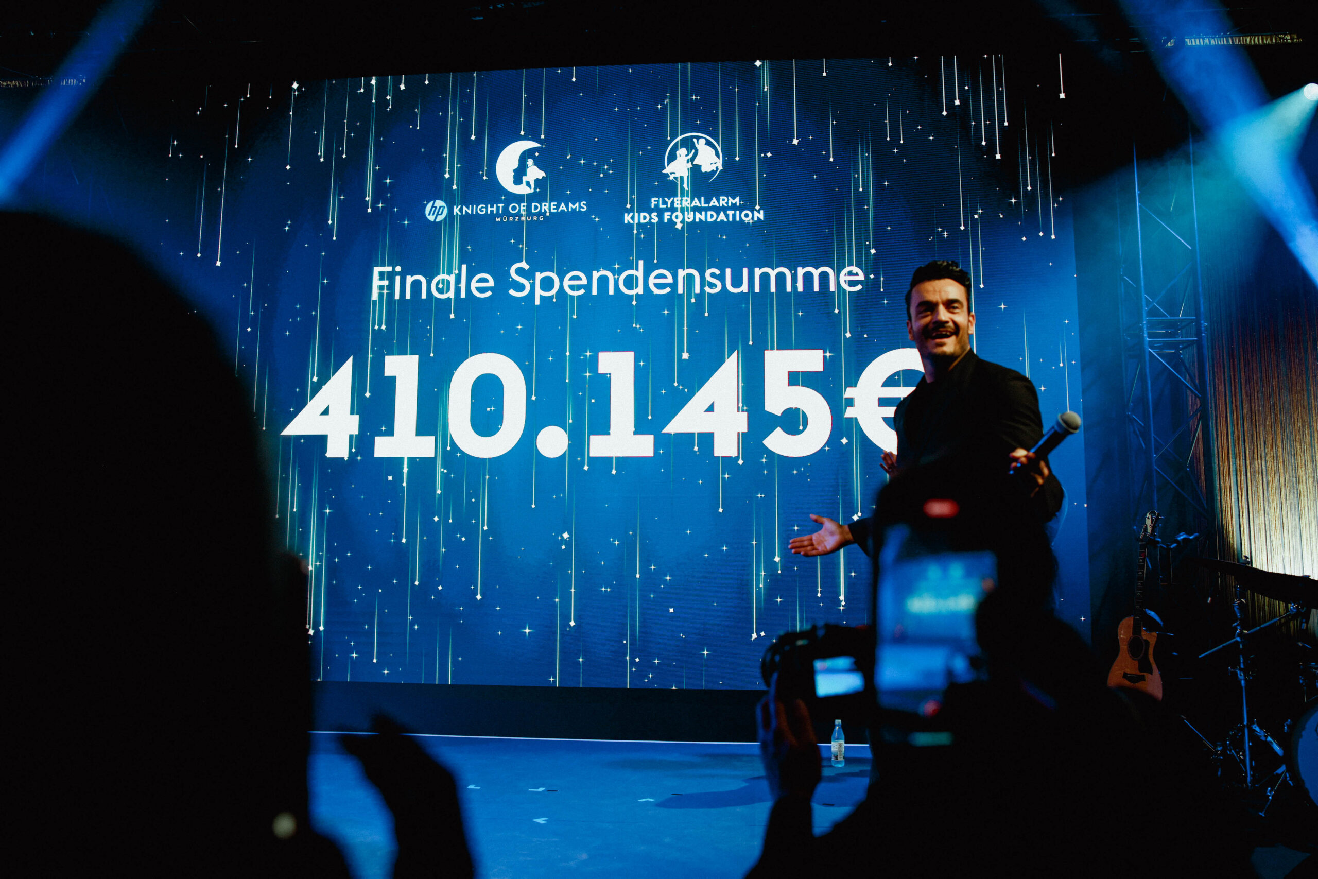 Zum Abschluss verkündete FLYERALARM-CEO Thorsten Fischer die finale Spendensumme: exakt 410.145 Euro. Spätestens jetzt waren sich alle einig: Die zweite HP KNIGHT OF DREAMS war eine beeindruckende Veranstaltung. Mit Menschen, denen es ein Bedürfnis ist, wirklich zu helfen. Und einer Strahlkraft weit über Würzburg hinaus.